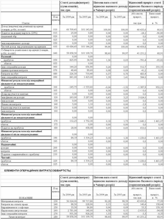“Вертикальногоризонтальний аналіз динаміки фінансових звітів ТОВ “Дослідноконструкторське бюро “РОТЕКС” за 2004 – 2005 роки