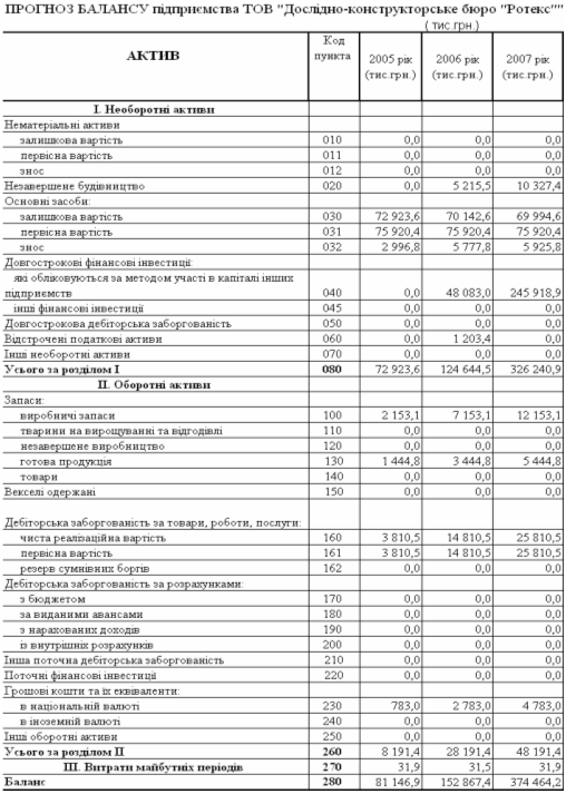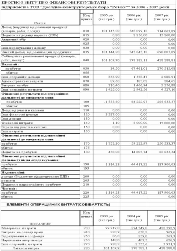Прогнозовані характеристики ТОВ „ДКБ РОТЕКС” у 2006 2007 роках