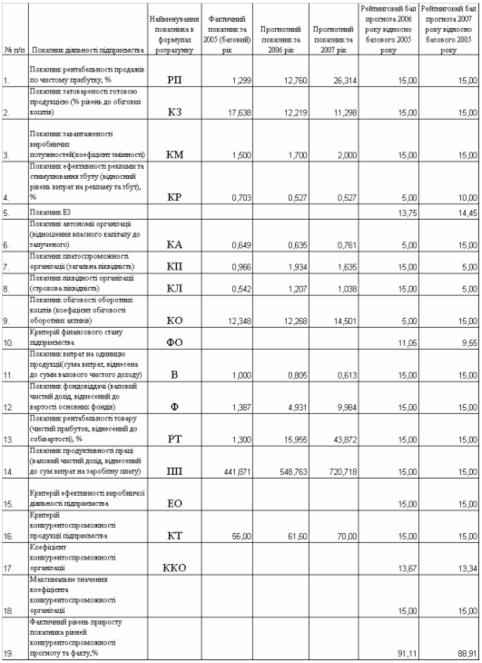 Одночасно, при рості споживчого рівня конкурентоспроможності продукції підприємства з 2005 році по 2007 рік на 17,3%, зростання загального рівня конкурентоспроможності підприємства в галузі за рахунок підвищення його внутрішньої фінансової стійкості та рентабельності становить 88,9%.