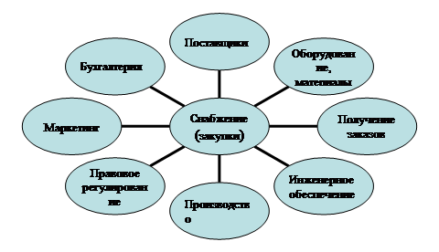Организация производственного процесса на предприятии сосредоточена в трех функциональных областях: закупочной, производственной и распределительной.