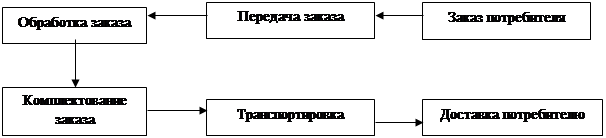 | Получение заказа | Обработка заказа | Дополнительная деятельность по приобретению отсутствующих на складе товаров | Доставка заказа |