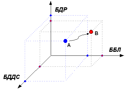 Во всем мире финансовое управление в конечном счете описывается в формате трех основных отчетов, которые определяют собой систему координат для оценки финансовых результатов деятельности ОАО«Сибнефть-Тюментнефтепродукт» (Рис.1). На рисунке точка А характеризует текущее состояние ОАО«Сибнефть-Тюментнефтепродукт», а - В целевое желаемое состояние в конце планового периода. Формирование бюджета ОАО«Сибнефть-Тюментнефтепродукт», собственно, и представляет собой метод проектирования будущих значений финансовых отчетов, при котором каждая их статья получает своего хозяина.