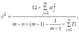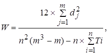 Сумма рангов, назначенных экспертами объекту j=1,2,... m (m — число исследуемых объектов), определяется по формуле:
