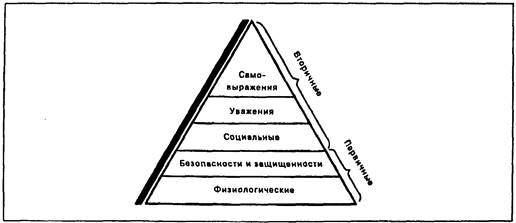 5. Согласно теории Маслоу пять основных типов потребностей (физиологические, безопасности, социальные, успеха, самовыражения) образуют иерархическую структуру, которая как доминанта определяет поведение человека. Потребности высших уровней не мотивируют человека, пока не удовлетворены, по крайней мере, частично потребности нижнего уровня. Однако эта иерархическая структура не является абсолютно жесткой и строгой.