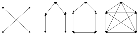 Коммуникационная сеть – соединение определенным образом участвующих в коммуникационном процессе индивидов с помощью информационных потоков. Коммуникационная сеть может влиять на сокращение или увеличение разрыва между посланным и полученным сообщением. Создаваемая руководителем сеть состоит из вертикальных, горизонтальных и диагональных связей. Вертикальные связи осуществляются сверху вниз от руководителя к подчиненному. Горизонтальные связи осуществляются между равными по уровням работниками или частями организации: между заместителями; между начальниками отделов; между подчиненными. Диагональные связи - это связи с другими начальниками и подчиненными. Взаимосвязь этих сетей создает реальную структуру организации. Возможности развития коммуникационной сети ограничивают, как правило, размеры подразделений в организации. Увеличение размера группы приводит к возрастанию количества возможных коммуникационных отношений. Поэтому от того, как построена коммуникационная сеть, зависит ее влияние как на сокращение, так и на увеличение разрыва между посланным и полученным значением, и соответственно деятельность персонала может отличаться большей или меньшей эффективностью. Особенно важно знание типов коммуникационных сетей или структур коммуникаций в группе. Среди существующих коммуникационных сетей для групп разной численности можно выделить четыре основных типов: колесо, цепь, круг, сложный круг (или всеканальная) (рис. 2).