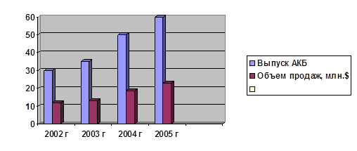 Из приведенной выше таблицы и диаграммы видно что, производственная программа рассчитана на 4 года начиная с 2002 года до 2005 года включительно. До приобретения нового оборудования продукция будет выпускаться на имеющемся оборудовании. После внедрения современного импортного оборудования планируется увеличить объемы производства на 50 %. Мощность завода рассчитана на переработку 40 тыс. тонн свинца или 1,2 млн. аккумуляторов в год. Фактически за 2001 год переработано 11 тыс. тонн свинца. Проведенные исследования позволят предприятию не только увеличить объемы производства, но также улучшить качество производимой продукции, что весьма важно в конкурентной борьбе с зарубежными фирмами которые производят аналоговую продукцию.