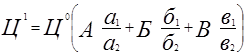А, Б, С – доли материальных затрат, зарплаты персонала и прочих элементов цены