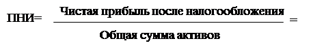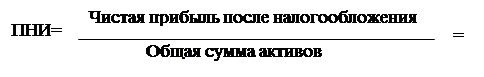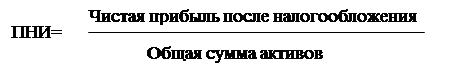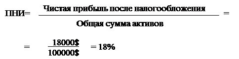 Прибыль на инвестиции, которая определяет взаимосвязь между чистой прибылью и инвестированным капиталом (общие активы), это критерий оценки эффективности использования руководством каждого доллара, инвестированного в активы компании. Увеличение ПНИ сказывается на увеличении прибыли на собственный акционерный капитал. ПНИ рассчитывается следующим образом: