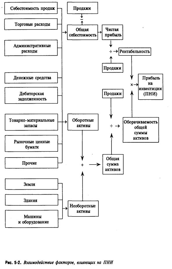 Разделение ПНИ основано на тезисе, что прибыльность компании непосредственно связана со способностью ее руководства эффективно управлять активами и квалифицированно контролировать расходы. Коэффициент прибыльности (процентное выражение прибыли, полученной от продаж) является показателем рентабельности или эффективности финансовых операций. С другой стороны, оборачиваемость общей суммы активов (количество операций, при которых инвестиции, размещенные в активах, оборачиваются в течение года с результатом, воплощенным в продажи) дает возможность оценить, насколько хорошо компания распоряжается своими активами.