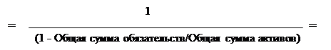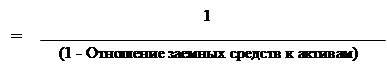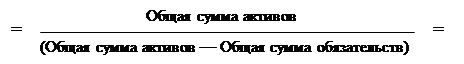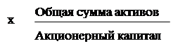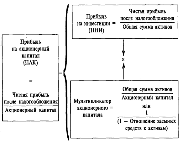 Один из вариантов формулы Дюпона, так называемая модифицированная формула Дюпона, показывает, как это осуществить на практике. Эта формула связывает вместе показатель ПНИ компании и степень ее финансового риска, то есть эффективность использования заемных средств. Финансовый риск измеряется мультипликатором акционерного капитала (отношением общей суммы активов компании к акционерному капиталу или, иначе говоря, отношением доллара активов к доллару акционерного капитала). Этот коэффициент, который рассчитывается делением общей суммы активов на акционерный капитал, даст показатель степени финансирования активов компании за счет акционерного капитала и заемных средств.