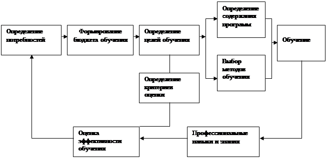 Цикл профессионального обучения начинается с определения потребностей, которое состоит в выявлении несоответствия между требуемыми и существующими компетенциями сотрудников и организации. На основании анализа потребностей и ресурсов организации формируется бюджет и определяются цели профессионального обучения, а также критерии оценки его эффективности. Поскольку затраты на профессиональное обучение рассматриваются как капиталовложения в квалификацию сотрудников, организация ожидает от них отдачи в виде повышения эффективности деятельности.