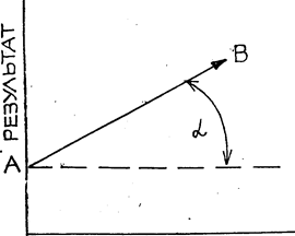 В принципе возможны две исходные позиции. Первая это та, в который вы находитесь и с которой, учитывая свои возможности, можно попытаться заглянуть в будущее, делая своего рода прогноз-пожелание. Исходя из наличной базы, мы задаемся вопросом, какой результат при имеющихся средствах можно получить за определенное (или отведенное для этого) время. На следующей схеме (рис. 1) дана линейная зависимость между результатом (А) и временем (В).