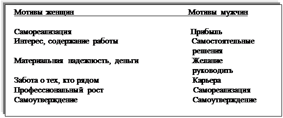 Сравнительные мотивационные шкалы женского и мужского бизнеса можно представить следующим образом:
