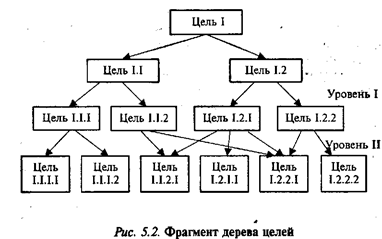 На каждом уровне организации возникают частные цели, причем только их совокупность необходимо рассматривать как некоторую цель определенного уровня управления. Отсюда возникает необходимость структуризации целей и построения дерева целей.