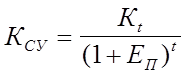 КСУ = Кt * (1 + ЕП )T-t ; Kt - капиталовложения в t-ом году, ЕП - коэффициент приведения (пример : ссудный процент)