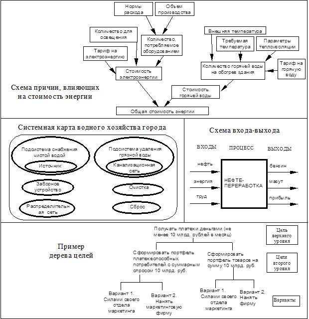 - дерево целей, ограничения, критерии (на шагах Определение целей, ограничений и Формирование критериев);