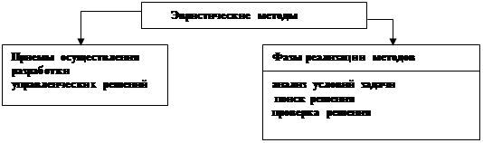 Эвристические методы основаны на логике, здравом смысле и опыте при РУР, при которых выявляется новая существенная информация. Они используют метод Сократа — извлекать скрытую в человеке информацию с помощью искусных наводящих вопросов. Методы применяются при недоступности или отсутствии условий для использования формализованных методов РУР. Основу эвристических методов составляет метод индукции, т.е. переход от частного к общему. При этом проблема разделяется на несколько относительно простых подпроблем. Для каждой подпроблемы формируются набор задач и набор соответствующих решений. Считается, что при успешном выполнении всех решений проблема будет разрешена в целом. Данные методы j практически целиком относятся к искусству в управленческой деятельности. .Эти методы эффективны, если руководитель смог так разделить проблему, что получившиеся подпроблемы являются типовыми (штатными) для конкретной компании и имеется типовая методика их реализации.