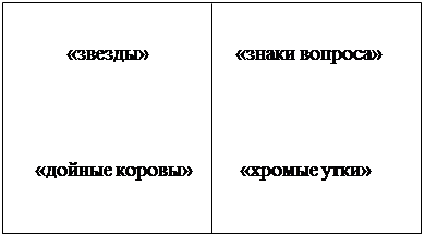 «знаки вопроса» подлежат специальному анализу и изучению для определения условий, при которых они могут превратиться в «звезды» и достаточно ли будет у предприятия для этого средств.