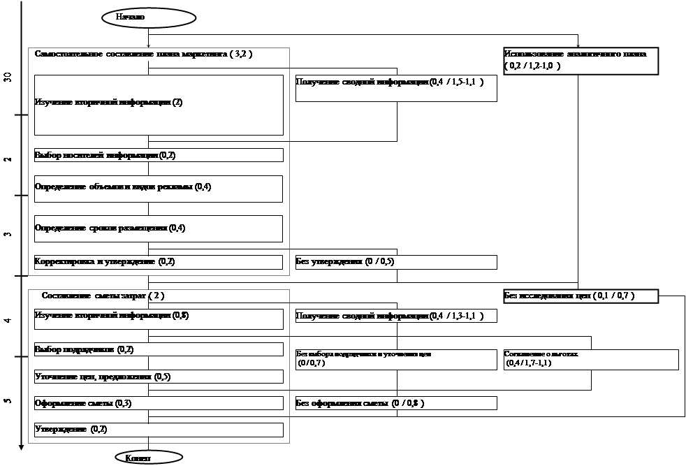 | 1.5А. Принятие плана маркетинга за основу сметы без утверждения у руководства | 0,5 | |