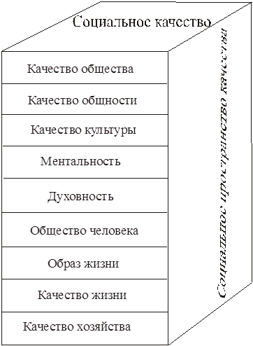 Методологическое значение категории социальное качество заключается не только в том, что она позволяет определить границы и природу социального, но и выявить системно-структурные его характеристики, рассмотреть качество общности, ментальности и т.п.