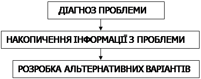 Виявлення проблемної ситуації являє собою 1-й етап процесу прийняття рішень. Для того, щоб не забігати наперед, слід зробити перелік всіх етапів цього процесу, лише після чого перейти до розгляду власне методології процесу. Таким чином процес прийняття управлінських рішень складається з наступних етапів: