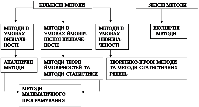 Таким чином за даною клафікацією виділяють такі методи прийняття управлінських рішень: