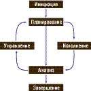 - процессы планирования — определение целей и критериев успеха проекта и разработка рабочих схем их достижения;