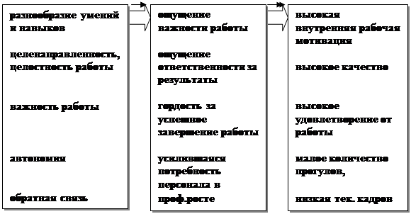 Грамотно спроектированная работа должна создавать внутреннюю мотивацию, ощущение личного вклада в выпускаемую продукцию. Человек - существо социальное, а значит, чувство сопричастности способно вызвать в нем глубокое психологическое удовлетворение, оно так же позволяет осознать себя как личность.