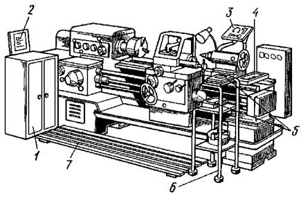 Оснащенность рабочего места и организация труда на нем в значительной мере определяют производительность труда токаря. Рабочее место оснащается: одним или несколькими станками с постоянным комплектом принадлежностей; комплектом технологической оснастки постоянного пользования, состоящим из приспособлений, режущего, измерительного и вспомогательного инструмента; комплектом технической документации, постоянно находящейся на рабочем месте (инструкции, справочники, вспомогательные таблицы и т. д.); комплектом предметов ухода за станком и рабочим местом (масленки, щетки, крючки, совки, обтирочные материалы и т. д.); инструментальными шкафами, подставками, планшетами, стеллажами и т. п.; передвижной и переносной тарой для заготовок и изготовленных деталей; подножными решетками, табуретками или стульями.