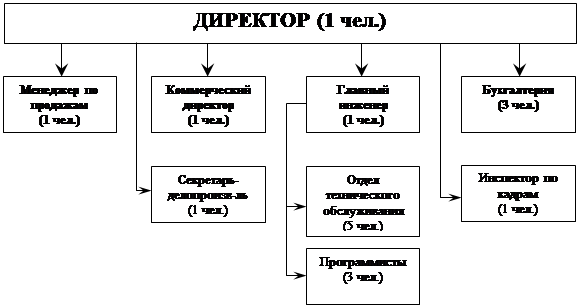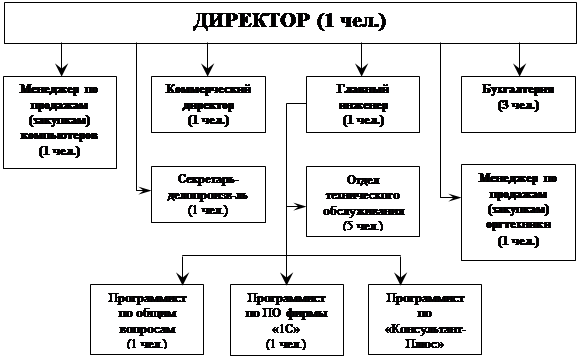 В данный момент штат сотрудников фирмы составляет 17 человек. Организационная структура СКЦ выглядит следующим образом:
