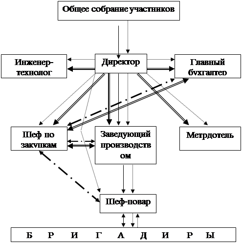 ООО ресторан “ Buono Chibo” является малым предприятием, следовательно функции оперативного управления производством осуществляет заведующий производством. Он осуществляет координацию и контакты между производством и залом и служит источником информации, поступающей в подразделения или, наоборот, направляемой заказчикам через отдел сбыта.