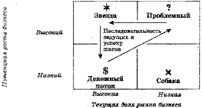 Условием успешной деятельности компании является наличие у нее портфеля товаров, характеризующихся различными темпами роста объемов продаж и различными долями рынка. Содержание портфеля представляет собой функция баланса денежных потоков, причем только диверсифицированная компания со сбалансированным портфелем может использовать свои силы для обоснованной капитализации возрастающих возможностей.
