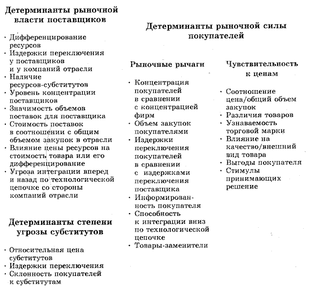 М. Портером была предложена модель конкурентного анализа. В этой модели автор предпринял попытку представить внешние для организации силы, определяющие уровень отраслевой конкуренции.