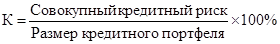 Средний размер кредитного риска по кредитному портфелю банка рассчитывается по формуле: