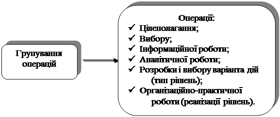 | 5 | 1. Пошук варіантів дій 2. Визначення критеріїв вибору 3. Співставлення варіантів 4. Організаційне оформлення 5. Прийняття рішень |