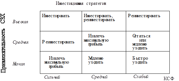 · выбор стратегии на основе анализа перспектив развития фирмы в различных видах деятельности и определение приоритетов по конкретным видам деятельности с точки зрения ее эффективности и обеспеченности ресурсами;