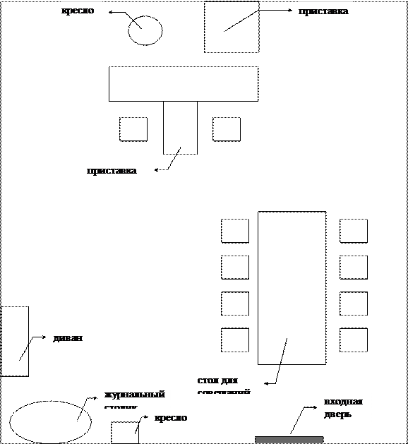 Неофициальные приемы лучше проводить в “зоне отдыха” (см. рис. №1). Удобно расположившись на диване или в кресле, менеджеру и собеседнику будет легче раскрепоститься и хорошо наладить межличностный контакт. Посетитель, пришедший с личной беседой к менеджеру, будет чувствовать себя гораздо более уверенно в такой обстановке, чем в официальной.