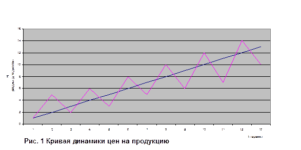 На рисунке 3 изображены две кривые, которые отображают динамику развития товарных цен в исследуемой отрасли.