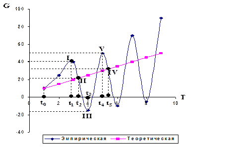 - вторая кривая демонстрирует теоретические представления исследователя о динамике цен во времени (тренд).