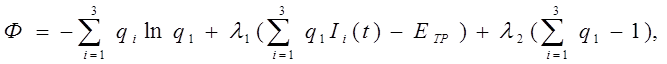 Условие (5) может выполняться при различных сочетаниях значений ql q2, q3, т.е. условия (4) и (5) не обеспечивают определенности решения задачи. Для этого нужно ввести дополнительное условие: придадим максимальную неопределенность возможным значениям qi,q2, q3.