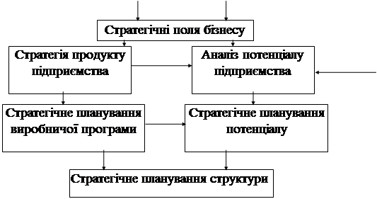 Заключним етапом стратегічного планування являється стратегічне планування структури підприємства. На основі планування полів бізнесу, виробничої програми і потенціалу фірми встановлюються наступні довгострокові, відносно стабільні елементи:
