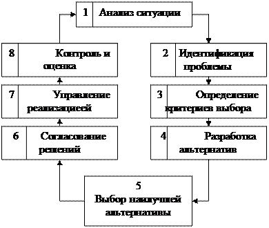 Процесс принятия решений — это циклическая последовательность действий субъекта управления, направленных на разрешение проблем организации и заключающихся в анализе ситуации, генерации альтернатив, принятии решения и организации его выполнения.