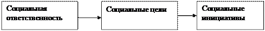 Социальная ответственность возникает при выполнении служебных, семейных, гражданских, общественных и личных обязанностей. Она отражает склонность личности придерживаться в своем поведении общепринятых в обществе социальных норм и отвечать за результаты их исполнения. Примером может служить «Клятва Гиппократа» — общепринятая норма социальной ответственности для врачей перед пациентами. Социальная ответственность может быть индивидуальной, групповой и общественной. Она неразрывно связана с реализацией социальных инициатив в рамках принятых социальных целей (рис.4)