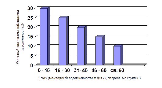 При этом, зависимость такова: в общей сумме дебиторской задолженности по срокам погашения до 30 дней около 4 % относится к разряду безнадежной; 31 – 60 дней – 10 %; 61 – 90 дней – 17 %; 91 – 120 дней – 26 %; при дальнейшем увеличении срока погашения на очередные 30 дней доля безнадежных долгов повышается на 3 – 4 %.