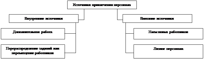 Когда организации необходимо принять новых работников, возникают два вопроса: где искать потенциальных работников и как их известить об имеющихся рабочих местах. Существуют два возможных источника набора: внутренний (из работников организации) и внешний (из людей никак не связанных с организацией) (рис.1).