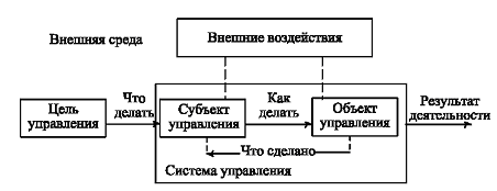 Управлением считается процесс воздействия субъекта управления на объект управления в целях обеспечения последним эффективного функционирования и развития.