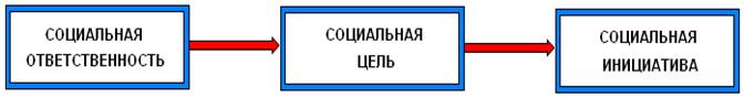 Социальная ответственность возникает при выполнении служебных, семейных, гражданских, общественных и личных обязанностей. Она отражает склонность личности придерживаться в своем поведении общепринятых в обществе социальных норм и отвечать за результаты их исполнения. Примером может служить «Клятва Гиппократа» — общепринятая норма социальной ответственности для врачей перед пациентами. Социальная ответственность может быть индивидуальной, групповой и общественной. Она неразрывно связана с реализацией социальных инициатив в рамках принятых социальных целей (схема 3).