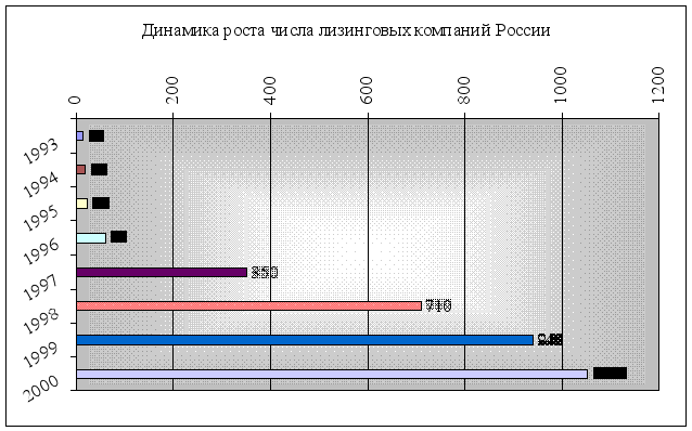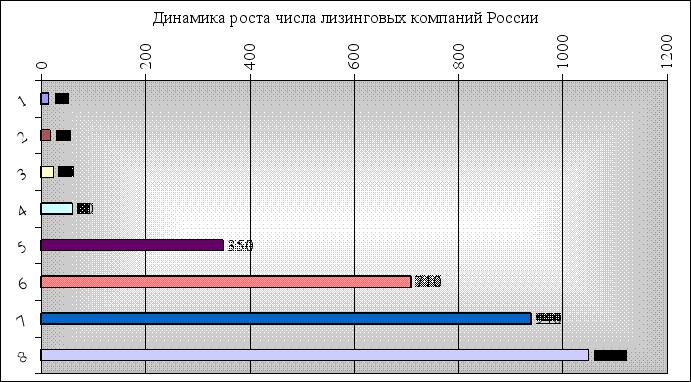 В настоящее время на российском рынке лизинговых услуг работает большое количество лизинговых компаний, число которых постоянно растет. Эти компании способны привести в движение высвобождающиеся производственные мощности и значительно удовлетворить потребности промышленных и коммерческих предприятий в использовании оборудования (имущества). Причем при дефиците финансовых ресурсов, эти структуры способны помочь выжить многим предприятиям, обеспечив технологическое оснащение их производства, т. е. заложить основы выхода из кризиса и будущего экономического подъема.