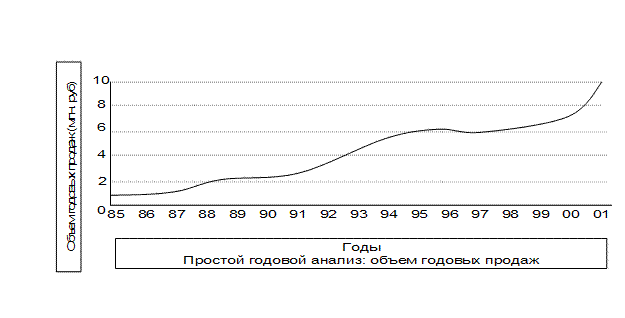 В качестве индикаторов жизнеспособности бизнес–стратегии можно рассматривать уровень и темпы роста объема продаж и доли рынка. Сохранение прочных рыночных позиций или быстрый рост обычно являются признаками сильного конкурента и успешной стратегии, а ухудшение позиций может быть сигналом о предстоящих финансовых или организационных трудностях и незаинтересованности либо неспособности компании к осуществлению определенных стратегий. Чтобы получить приблизительную оценку совокупного объема продаж крупной компании американские специалисты предлагают следующий способ: надо умножить численность персонала на 20000$ (численность персонала узнать несложно).