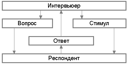 Именно таким образом строится традиционная схема взаимодействия в процессе проведения опроса. Конечно, имеются технологические вариации при проведении различных по форме опросов и задания различного типа вопросов. Эти вариации рассмотрены в последующих главах настоящего издания.